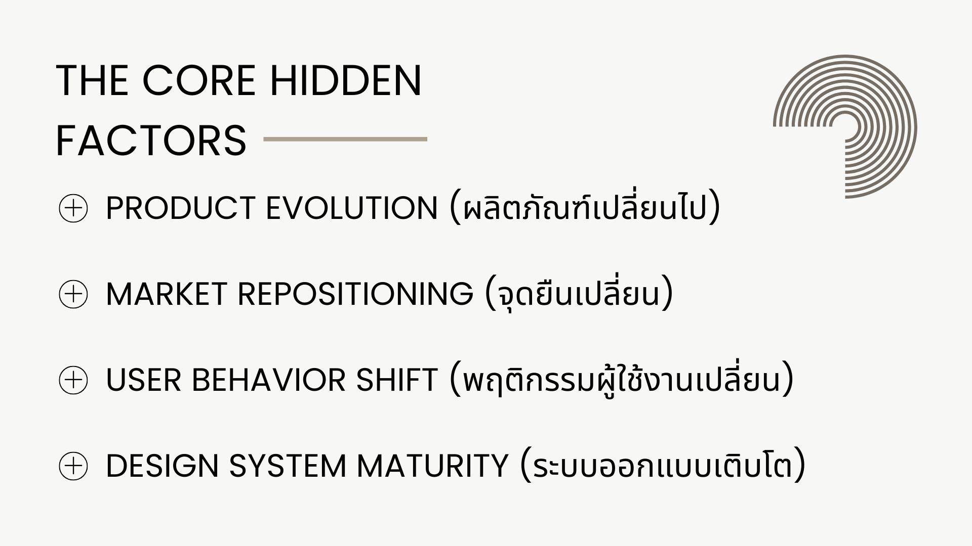 เพราะการ redesign ไม่ได้เกิดจากความรู้สึกอยากเปลี่ยน แต่มาจาก “The Core Hidden Factors” ที่ขับเคลื่อนให้ผลิตภัณฑ์และประสบการณ์ของผู้ใช้เติบโตไปพร้อมกับโลกที่เปลี่ยนแปลง