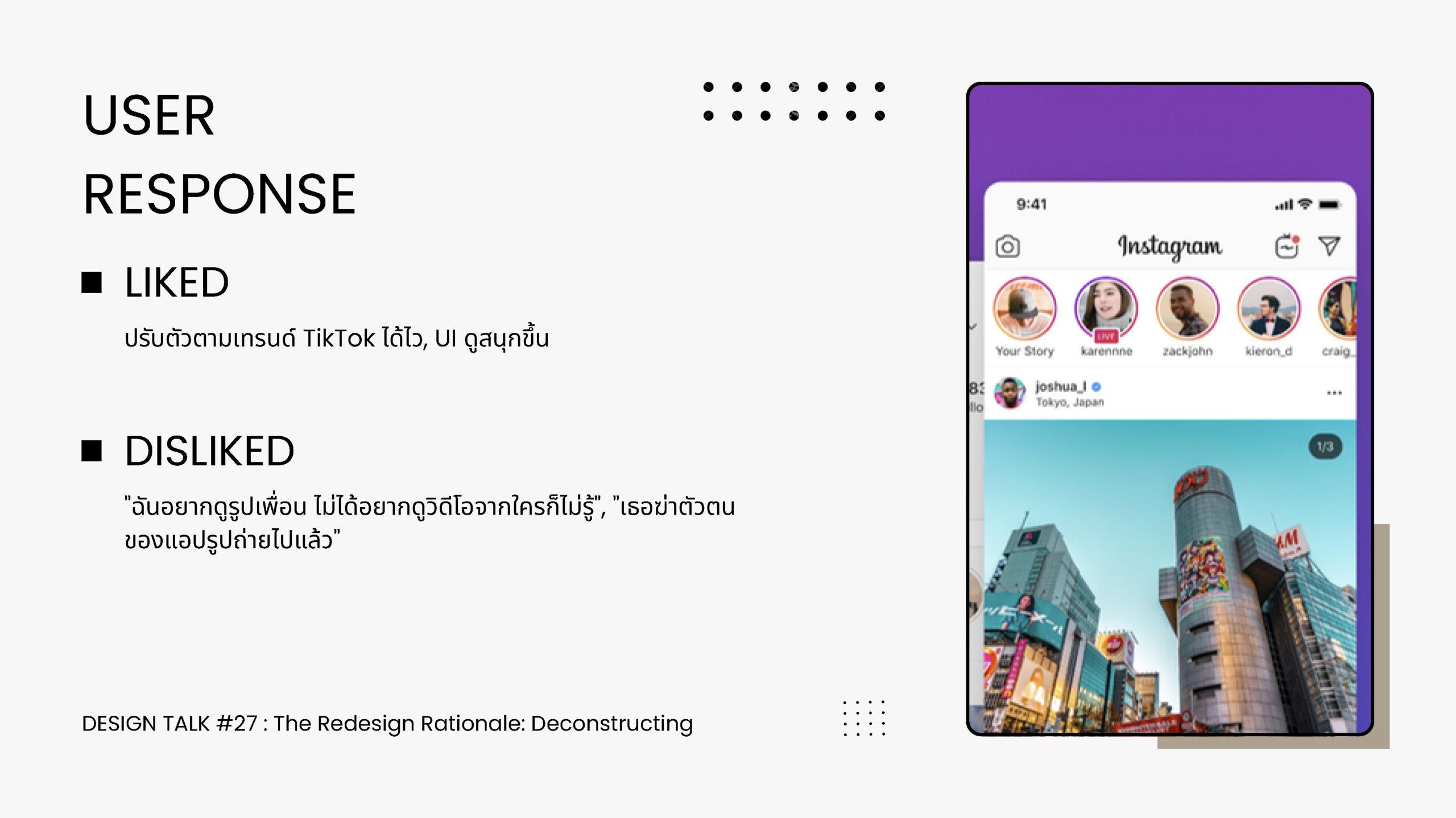 ทีมดีไซน์จึงต้องคอยสังเกต เรียนรู้ และปรับให้เข้ากับพฤติกรรมที่เปลี่ยนไป การ redesign คือโอกาสในการ “อัปเดตความเข้าใจผู้ใช้” ให้ทันโลก “We don’t redesign for trends — we redesign for people.”